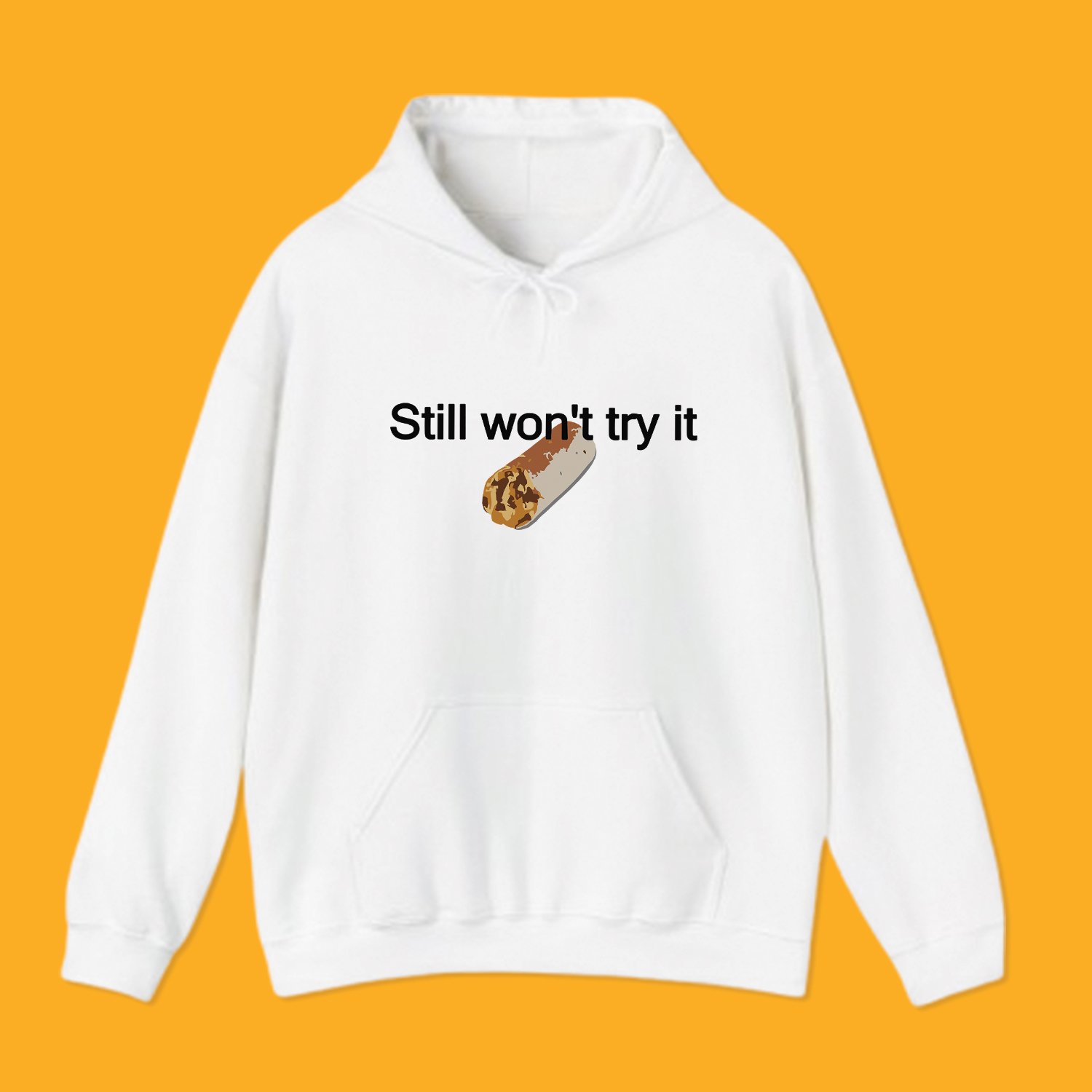 Steal the look of the MVP! As seen on Nikola Jokic during his viral tunnel walk, this “Still Won’t Try It” T-Shirt is the ultimate meme apparel for Denver Nuggets fans and basketball lovers. Whether referring to a quesadilla, a burrito, or just his hilarious indifference, this tee captures “The Joker’s” iconic personality perfectly.