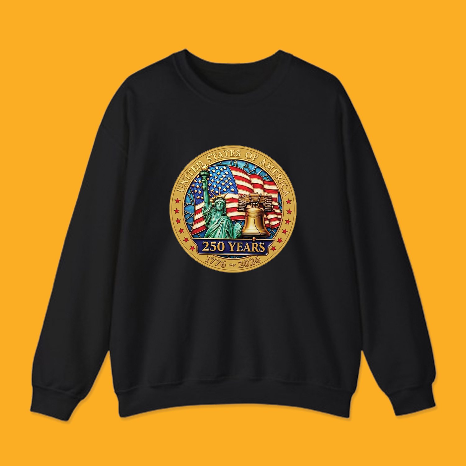 Whether you are attending a July 4th parade, a historical reenactment, or just showing your patriotism year-round, this vintage-inspired crest design captures the spirit of liberty. The artwork features detailed iconography of the Statue of Liberty, the Liberty Bell, and the Stars and Stripes, all framed by a classic “United States of America” golden emblem.